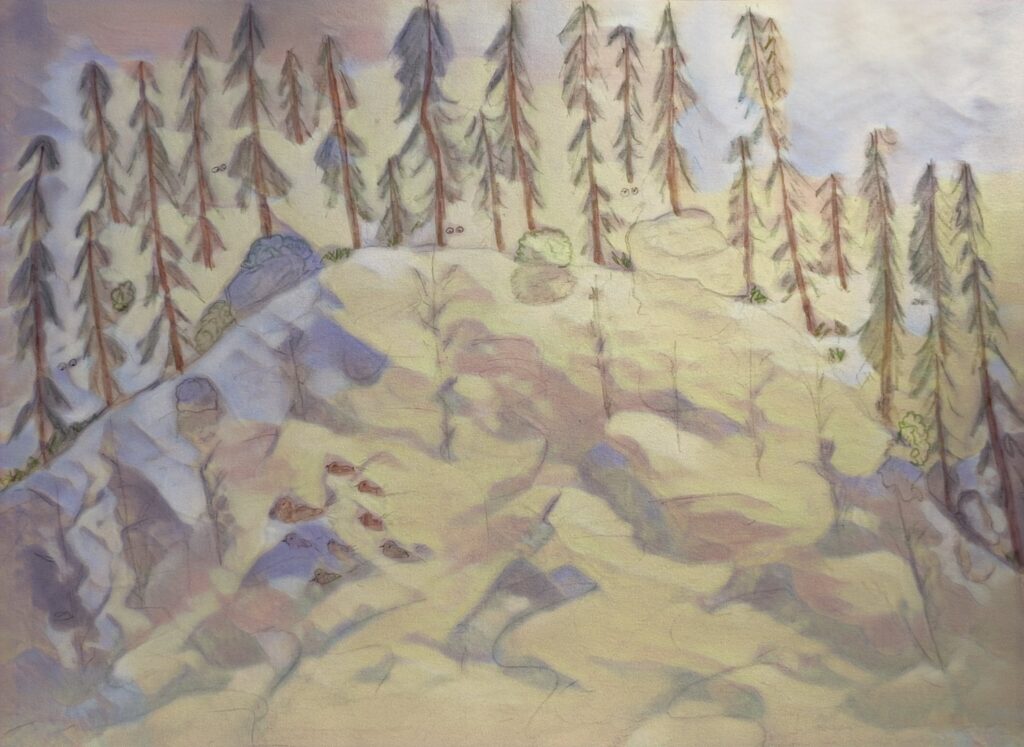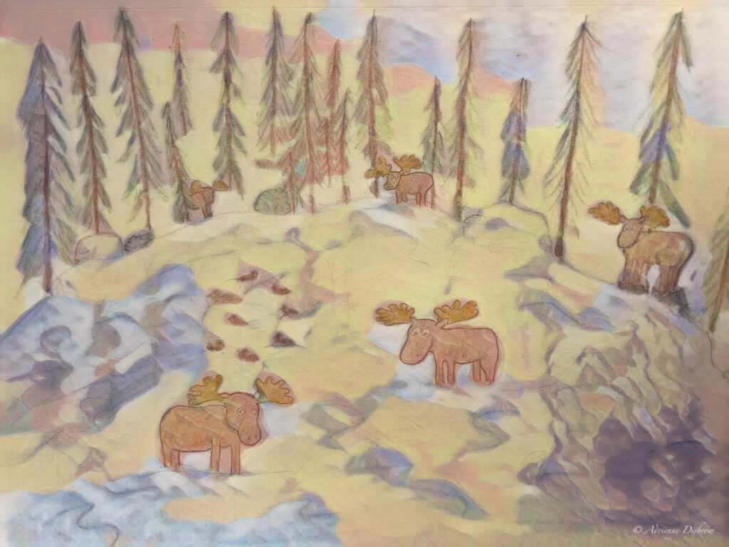 It was a lovely. Unfortunately, we did not see a single moose. I don’t have my dad’s skill of drawing/painting. I couldn’t help trying as I imagined the lake while we were there and after we left. Hopefully, some can relate…